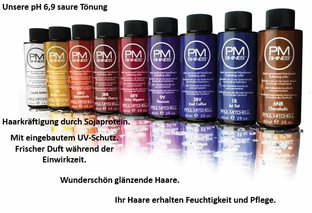 Dabei werden die Haare am Haaransatz leicht belastet, damit die Haarlängen und vor allem die empfindlichen Haarspitzen nicht geschädigt werden, verwenden wir für Ihren gewünschten Farbton eine einzigartig saure Färbung „PM Shines“.